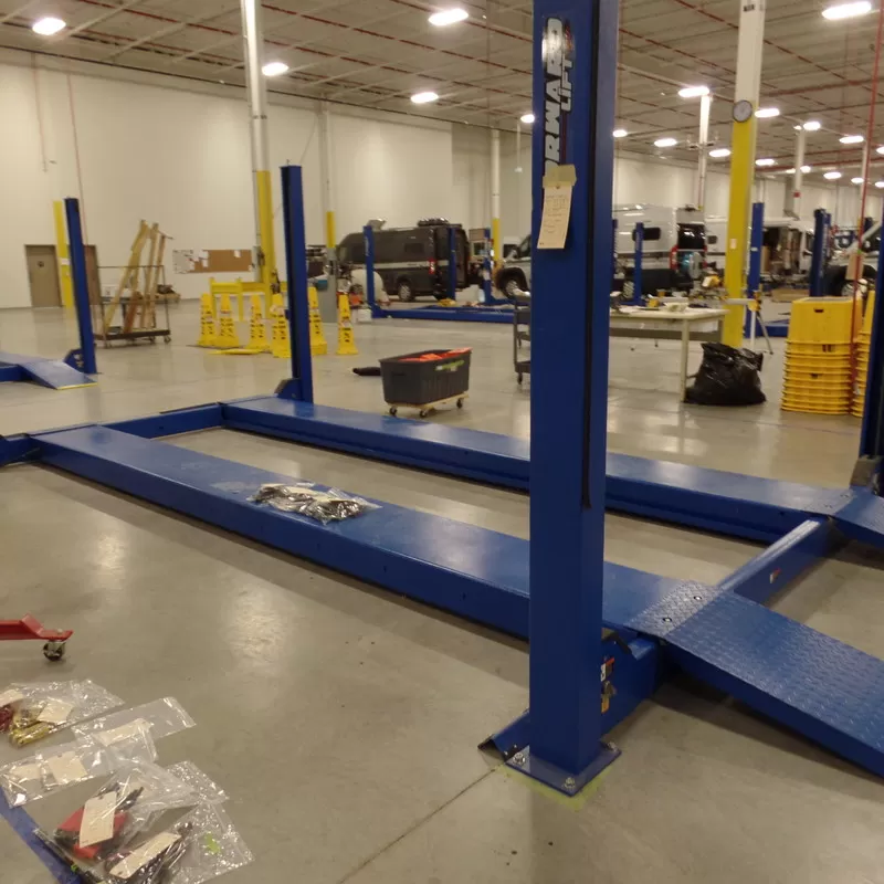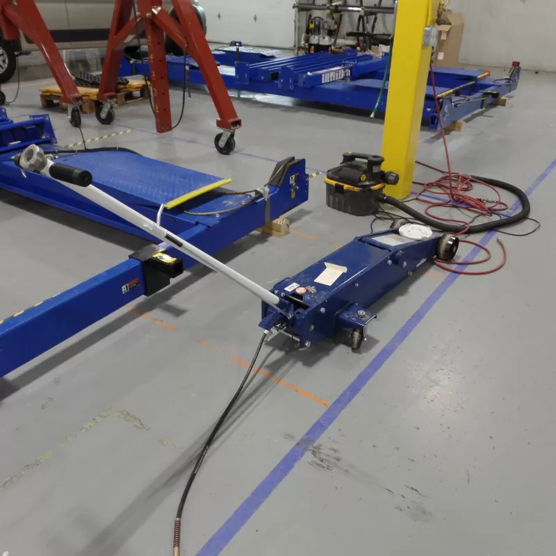 - Shearing flush to the floor of all anchor bolts or fasteners;