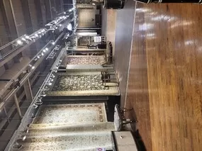 - Shearing flush to the floor of all anchor bolts or fasteners;