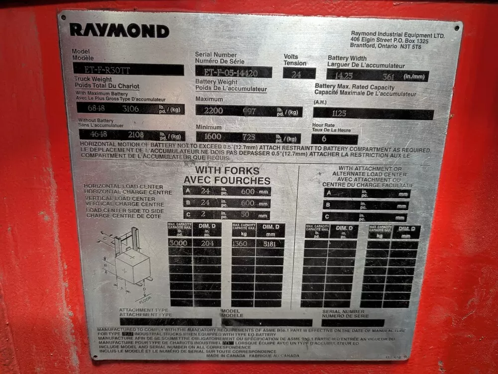 5-Ton CANADIAN CRANE Overhead Crane, 50-Ton Chiller, RAYMOND Reach Trucks & Support Equipment